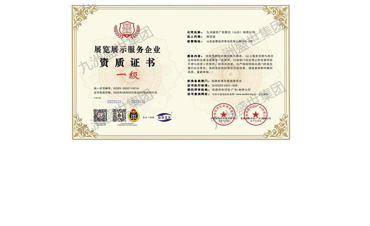 九洲盛世廣告展覽(山東)有限公司是極具時(shí)代創(chuàng)新實(shí)力的展覽展示整合服務(wù)商,專(zhuān)注于展覽展示策劃創(chuàng)意、空間設(shè)計(jì)、虛擬仿真、互動(dòng)科技、影視制作、軟件開(kāi)發(fā)、系統(tǒng)集成、工程運(yùn)營(yíng)的跨界整合,致力于為各類(lèi)政企客戶(hù)提供多媒體展館綜合解決方案。我們致力于為客戶(hù)提供咨詢(xún)、策劃、設(shè)計(jì)、科技、工程落地一站式標(biāo)準(zhǔn)化服務(wù),業(yè)務(wù)涵蓋企業(yè)品牌展廳、企業(yè)產(chǎn)品展廳、文化博物館、地產(chǎn)主題館、科技館、黨建主題館等各類(lèi)多媒體展館一體化總包工程。一直以來(lái),我們始終秉承“創(chuàng)新、專(zhuān)注、高效”的理念,關(guān)注客戶(hù)體驗(yàn)不斷提高核心競(jìng)爭(zhēng)力。